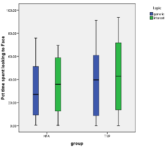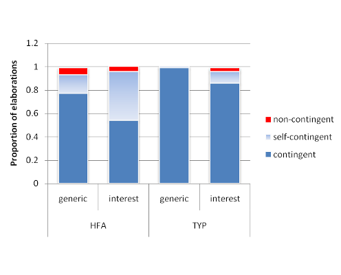 Our findings indicated that, speaking about their circumscribed interest led children on the autism spectrum to be less adaptive to their partner verbally, but at the same time speaking about this highly practiced topic allowed for increased attention to their partner’s face. Please click on the figures below to learn more.